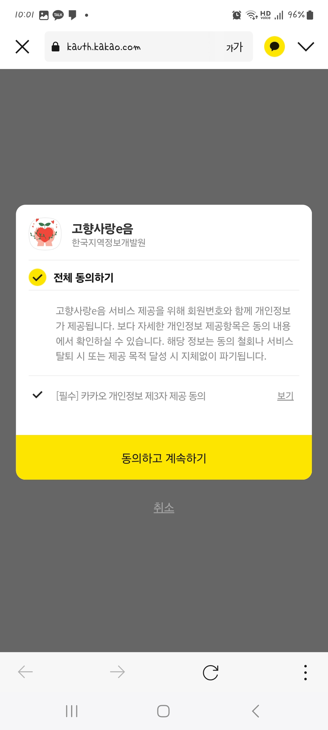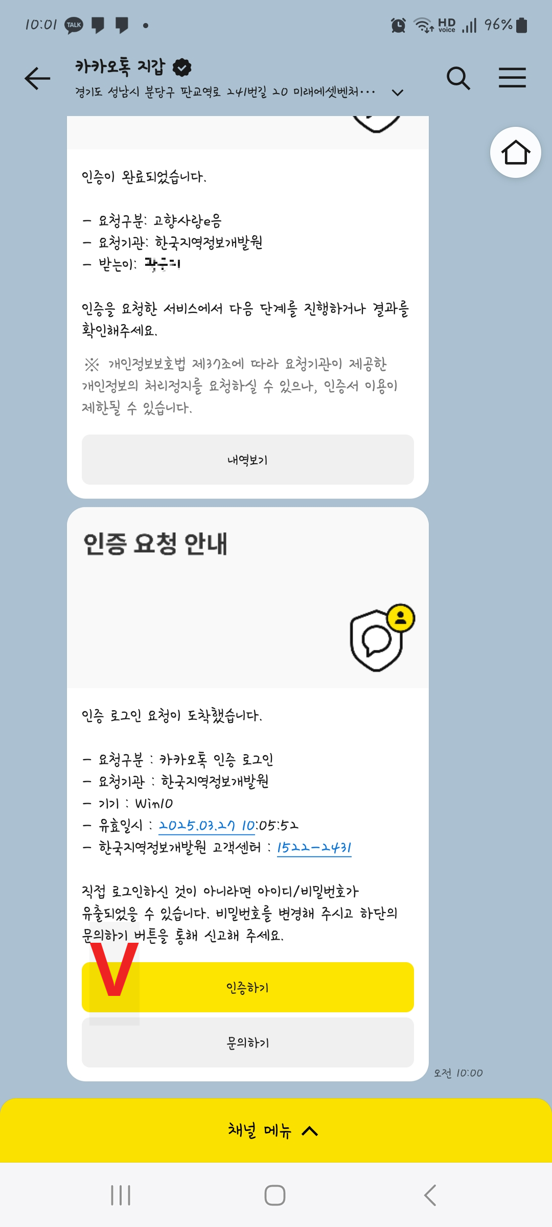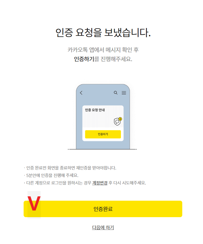 카카오톡 지갑으로 알림이 옵니다. 인증하기를 누르고 전체 동의 후 카카오 인증서로 인증해줍니다. 그러면 회원가입이 완료되었습니다.